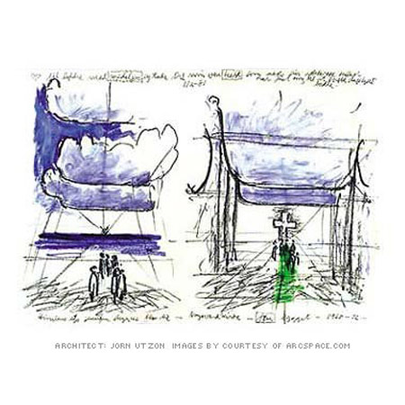 Utzon的輪廓可以清楚地說明,它的靈感來自于躺在陽光下的夏威夷沙灘上觀看信風(fēng)云的形成。