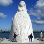 這座6多米高的白色混凝土雕塑擁有許多保護符號。雕塑的概念出發(fā)點是船的象征,在海上,這是一個重要的保護標志。守護天使,女人和美人魚以奇怪的方式集合在一起。
