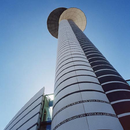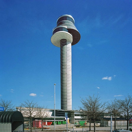 由建筑師Gert Wing?rdh設(shè)計的具有雙色主體和交錯平面的頂部結(jié)構(gòu)的阿蘭達控制塔,比起功能性控制塔,更接近現(xiàn)代主義雕塑。控制塔是大型“跑道3”項目中的一部分。