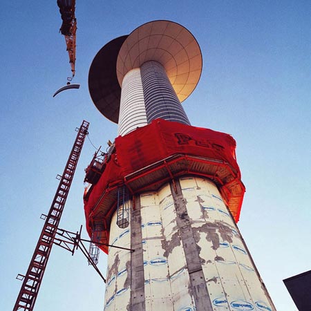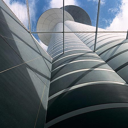 為了增強雕塑的感覺,控制塔主體由鑲嵌字母組成句子的預(yù)制構(gòu)件覆蓋,其內(nèi)容來源于1928年Antoine de Saint-Exupérus寫的小說《Mail Plane South》。