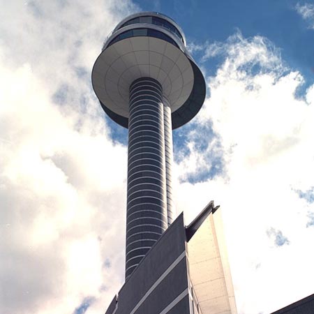 DC9機身的各個部件的形狀激發(fā)了控制塔底部的建筑物設(shè)計??梢詮闹黧w形狀和塔的上部結(jié)構(gòu)的翼狀表面辨認出。