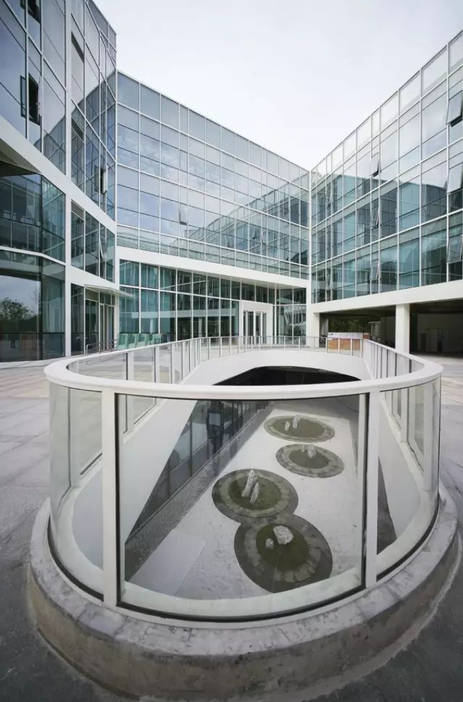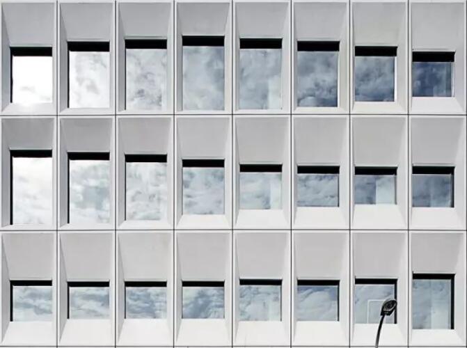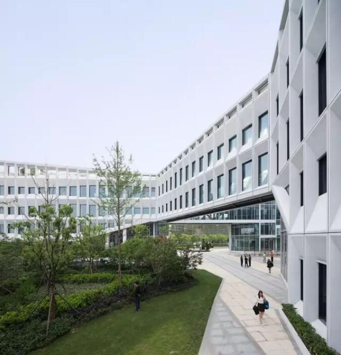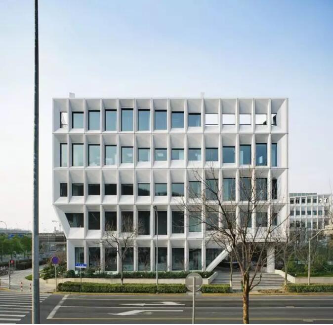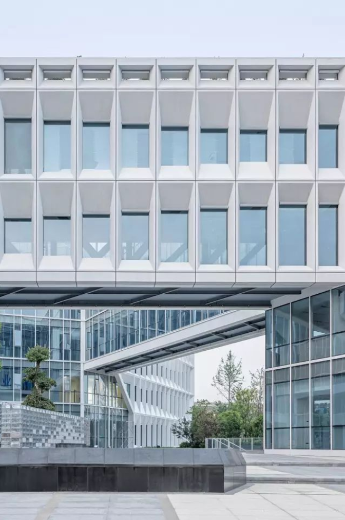 每個屏板由GRC(玻璃纖維混凝土)材料制成,使用阿爾博?牌52.5級白水泥,去皮露出白色骨料,整個幕墻的屏板多達(dá)千個,運(yùn)用數(shù)字化算法對單元格進(jìn)行邏輯分析形成幕墻優(yōu)化方案,使得最終用26種單元屏板就能組成整體立面上的變化,并貫穿幕墻施工深化和施工過程。每個屏板也是集合外圍護(hù)、采光、遮陽、通風(fēng)、夜景照明為一體的立面構(gòu)件,先在工廠里預(yù)制組裝,然后將組裝好的屏板運(yùn)輸?shù)浆F(xiàn)場、吊裝裝配起來。通過4個1:1大小的mock up屏板兩年時間的風(fēng)吹日曬實(shí)驗,清潔度和精密度還保持很高的水準(zhǔn),之后才對整個幕墻進(jìn)行裝配式建造。