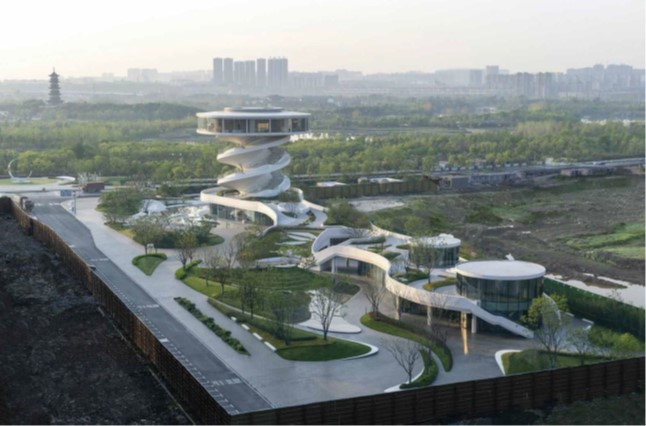 位于奧斯陸的北歐建筑事務(wù)所最近在中國江西省南昌市建成了一座新的多功能建筑項(xiàng)目。此波浪的設(shè)計(jì)靈感來自于建筑群周圍的自然濕地。5844平方米的建筑群毗鄰象湖濕地公園,提供了一種引人注目的空間體驗(yàn),建筑形式與周圍景觀融為一體。設(shè)計(jì)注重水、地、天三大自然元素,每一個元素都代表一個功能區(qū):前廣場、商業(yè)設(shè)施和觀景塔。雙螺旋塔構(gòu)成了設(shè)計(jì)的主要3D元素,為游客提供了蜿蜒的360度視野。使用阿爾博?白水泥制造的總計(jì) 657 塊 GRC 雙曲板將雙螺旋塔包裹起來,將非線性結(jié)構(gòu)與自然相結(jié)合,創(chuàng)造全新的社區(qū)生活方式。