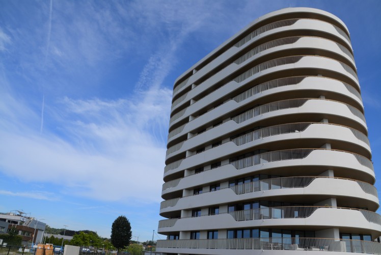 位于比利時(shí)特姆塞的BELGICA項(xiàng)目是沿著Scheldt河而建的高端住宅大樓,包含10個(gè)樓層,每層有4種類型的公寓,并包含2層縮小的頂部樓層。在它周圍